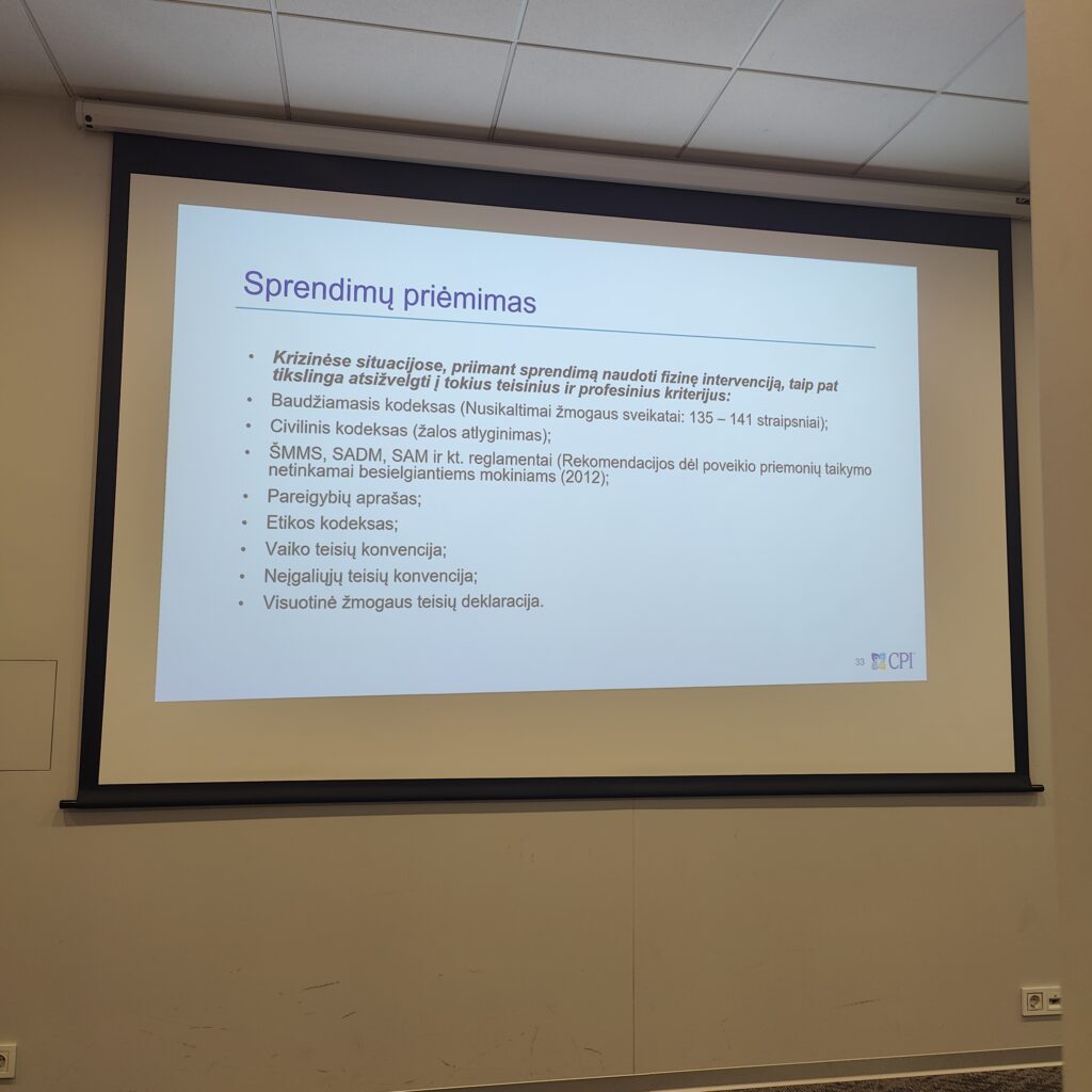Rugsėjo 25-26 dienomis vyko II grupės dviejų dienų mokymai „Agresijos valdymas – saugi intervencija“, mokymus vedė Doc. dr. Rolandas Paulauskas, mokymų modulis parengtas remiantis JAV ir JK funkcionuojančio „Krizių prevencijos instituto „; (Crisis Prevention Institute, Inc.) ilgamete patirtimi ir jo specialistų sukurtos „Saugios intervencijos ” programos pagrindu.